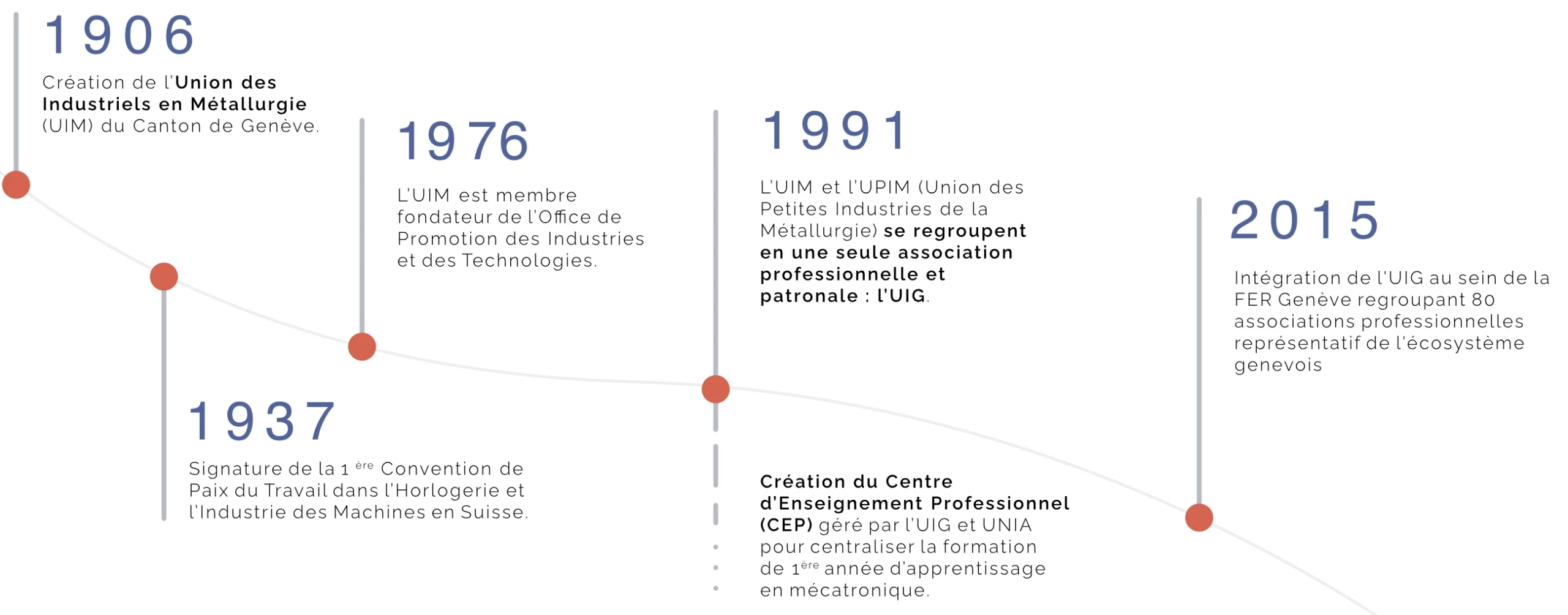 Fondée en 1906, l’UIG accompagne l’industrie genevoise depuis plus d’un siècle. Cette longévité témoigne de notre capacité à évoluer avec les besoins des entreprises tout en préservant nos valeurs fondatrices.